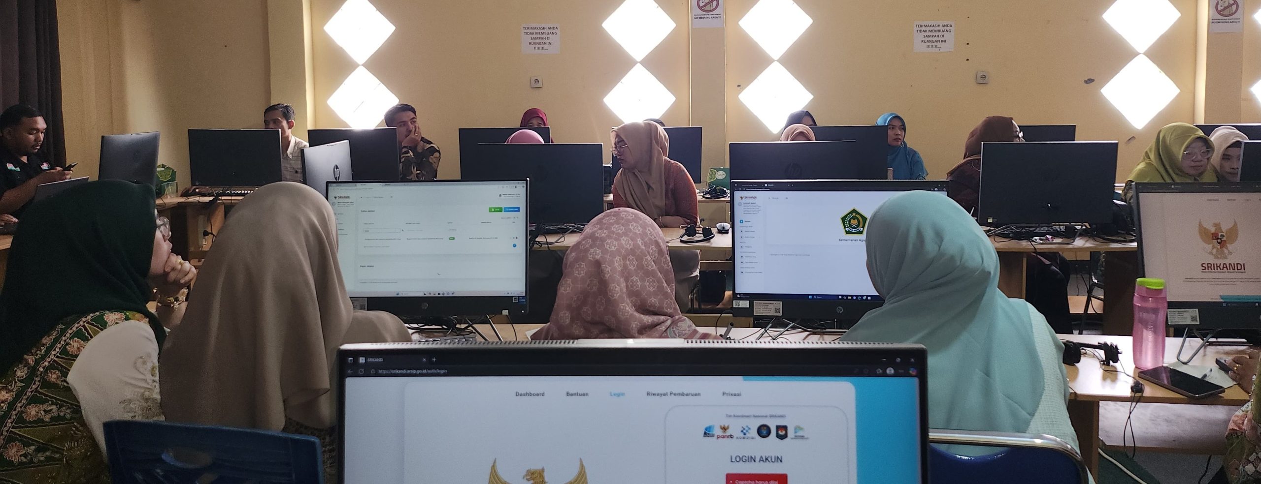 Adapun narasumber dalam kegiatan ini adalah Bapak Ahmad Maulana dan Bapak Ragil Dwi Nugroho dari Biro Umum Sekretaris Jenderal Kementerian Agama RI. Keduanya memberikan paparan lengkap mengenai kebijakan nasional terkait implementasi aplikasi SRIKANDI, serta memberikan pelatihan langsung mengenai cara pengoperasian sistem tersebut. Materi yang disampaikan meliputi pengenalan akun satuan kerja (Satker), pembuatan akun tata usaha (TU), registrasi naskah masuk dan keluar, hingga tahapan pemberkasan arsip digital.